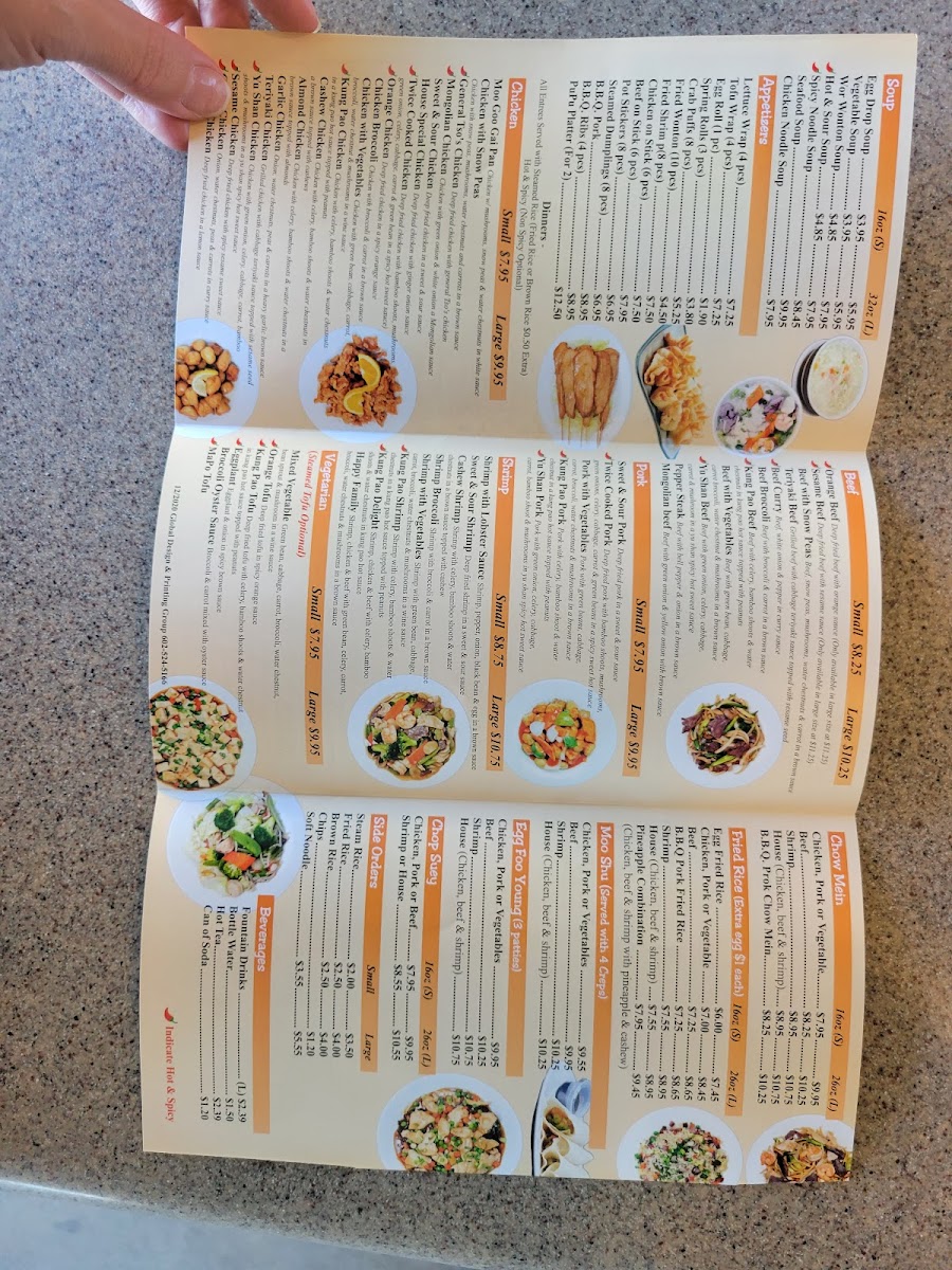 The menu is suitable for quick takeout orders as well as casual meals, with a focus on classic Chinese cuisine prepared for both individual servings and family-style portions.